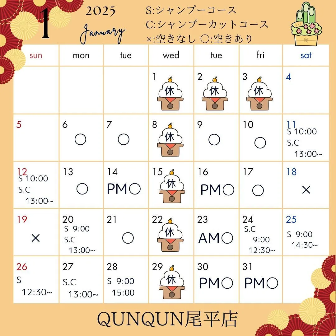 1月空き状況です🎍✨