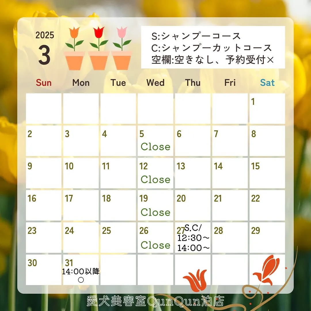3月空き状況です🤍🐾(3月25日18:00時点)