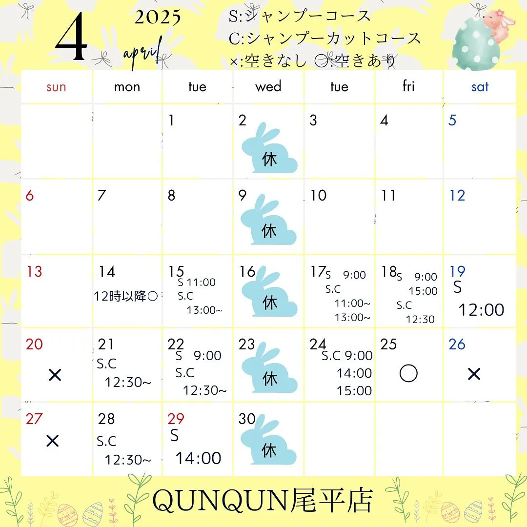 4月空き状況です🐣✨(4月13日時点)