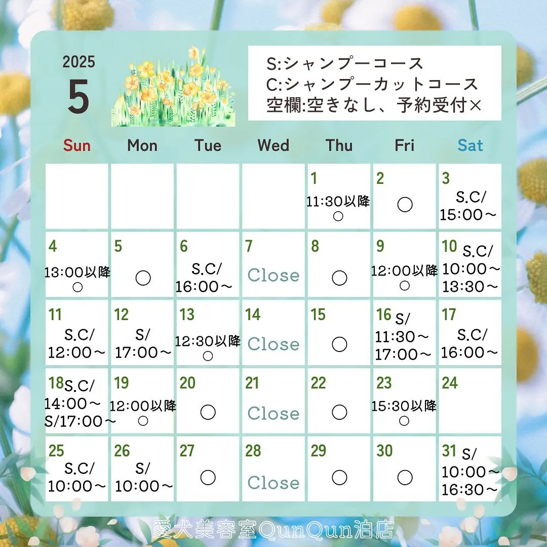 5月空き状況です🤍🐾(4月15日17:20時点)