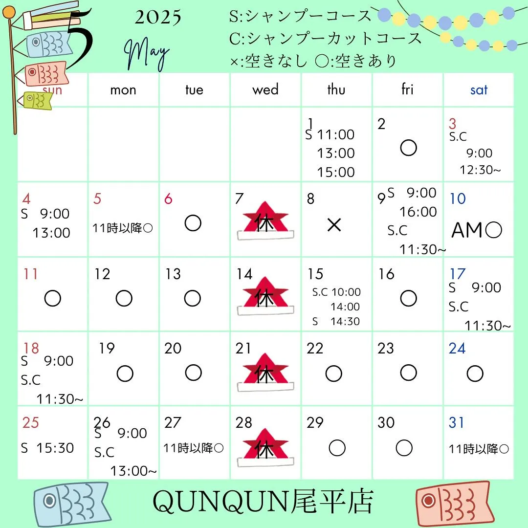 4月空き状況です🎏✨(4月15日時点)