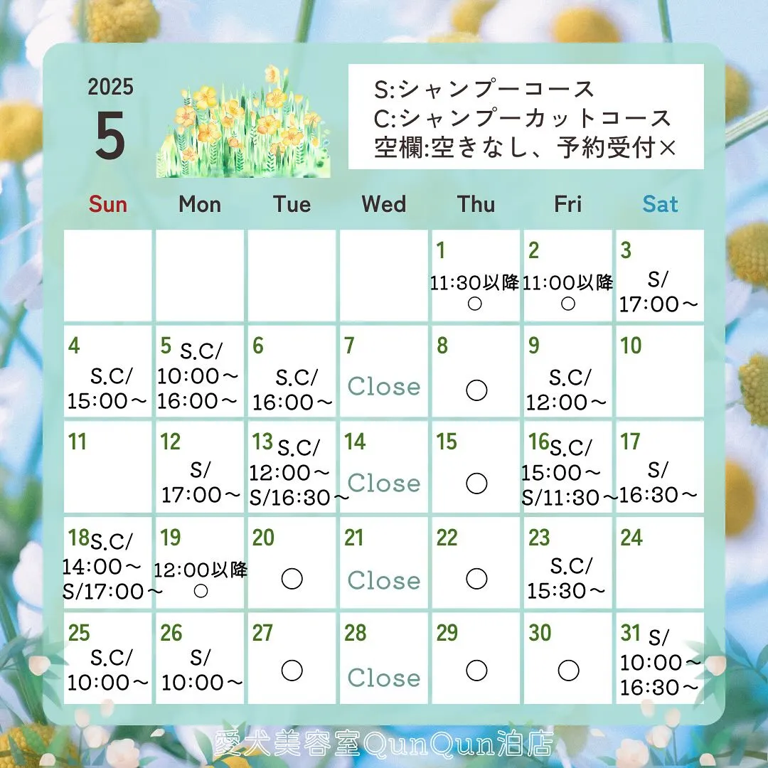 5月空き状況です🤍🐾(4月22日18:20時点)