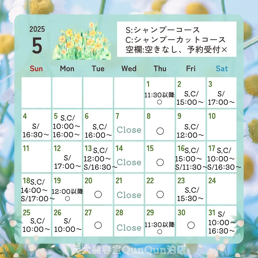 5月空き状況です🤍🐾(4月26日18:50時点)