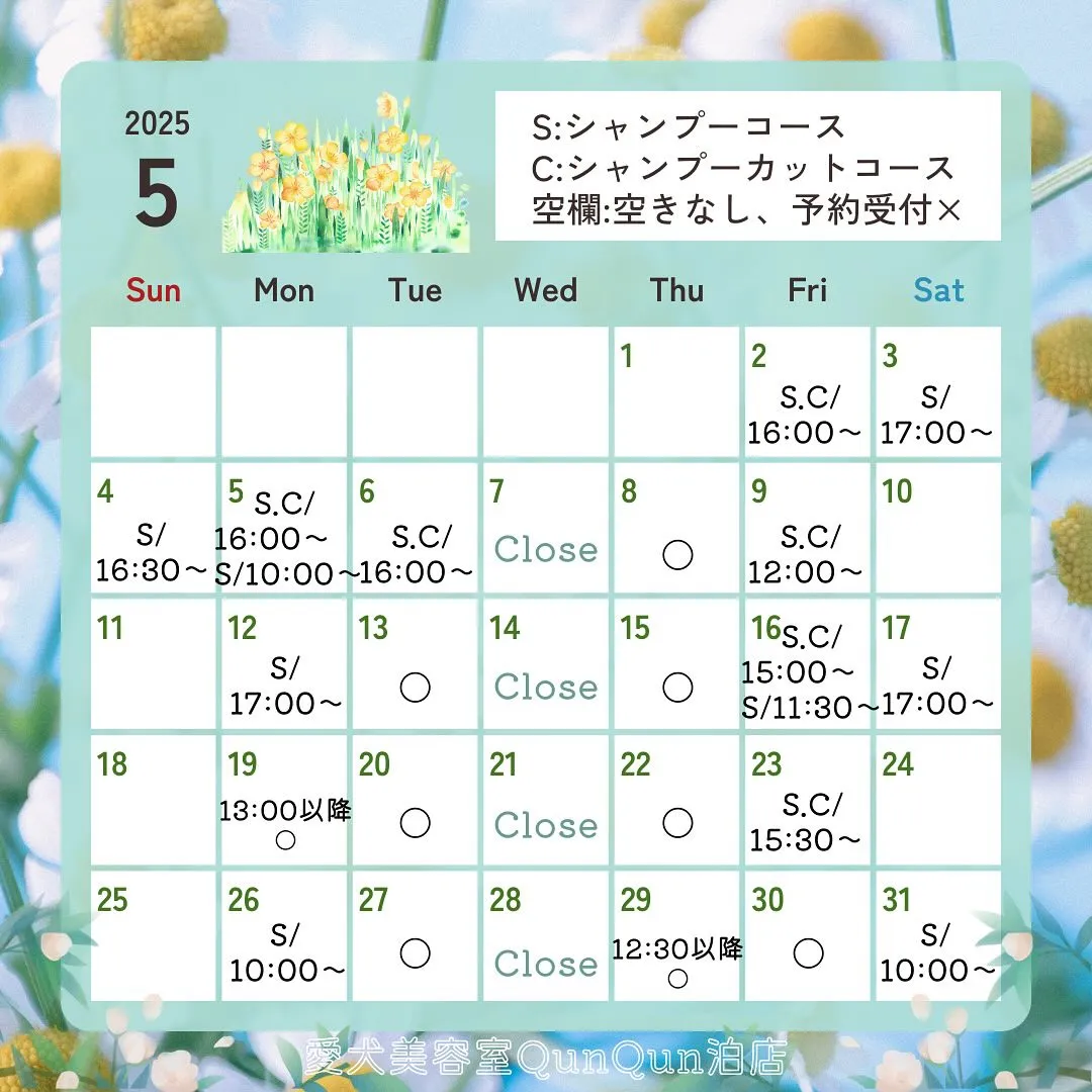 5月空き状況です🤍🐾(5月1日16:30時点)