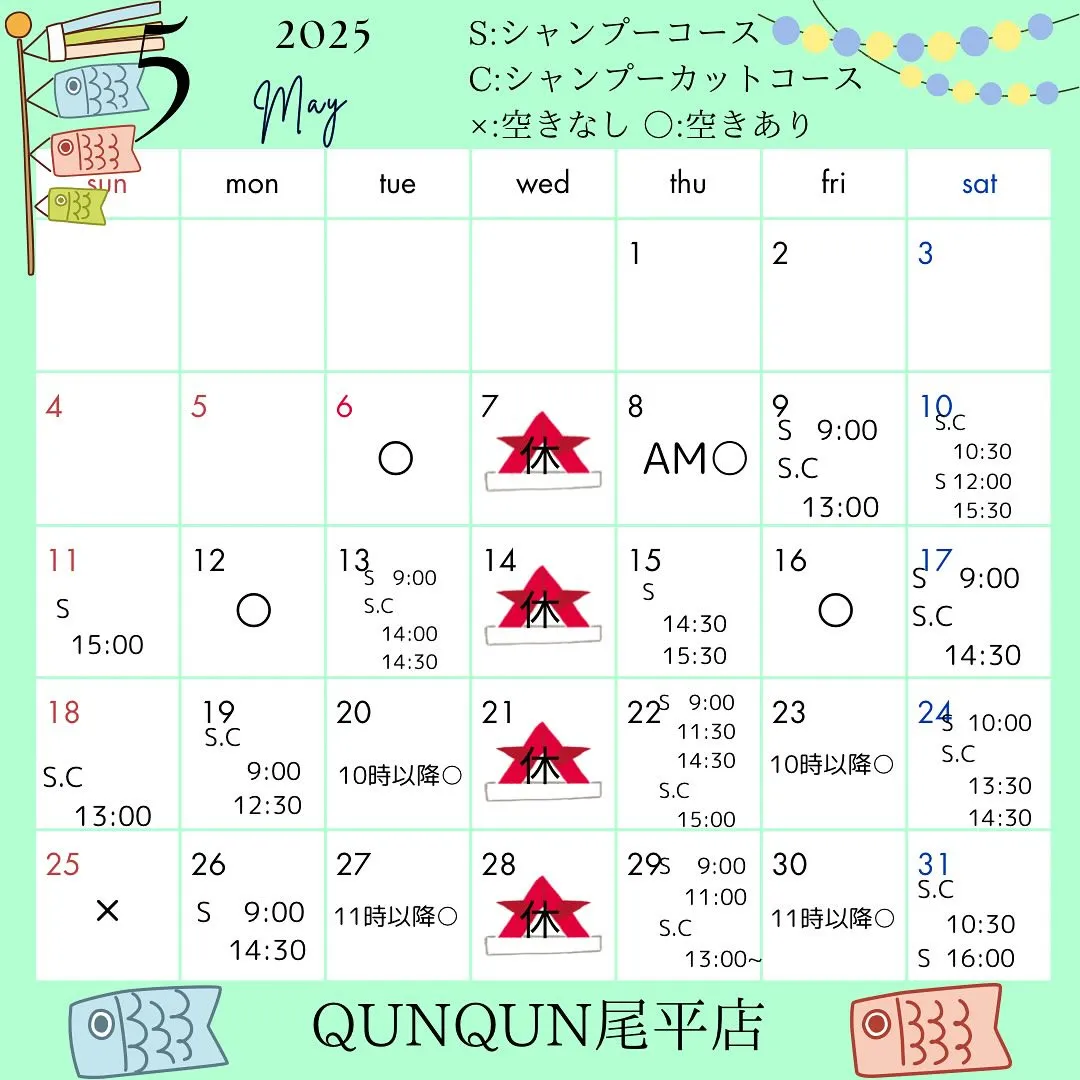 4月空き状況です🎏✨(5月5日時点)