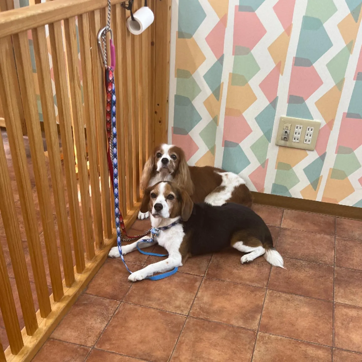 琥珀くんとまろんくん💕 2025/05/06 琥珀くんとまろんくん💕 シャンプーコースでした✨️全く同じ格好でお迎え待ちしていたので思わずお写真撮っちゃいました📸😮 #愛犬美容室クンクン亀山エコー店 #いぬすたぐらむ #トリミングサロン