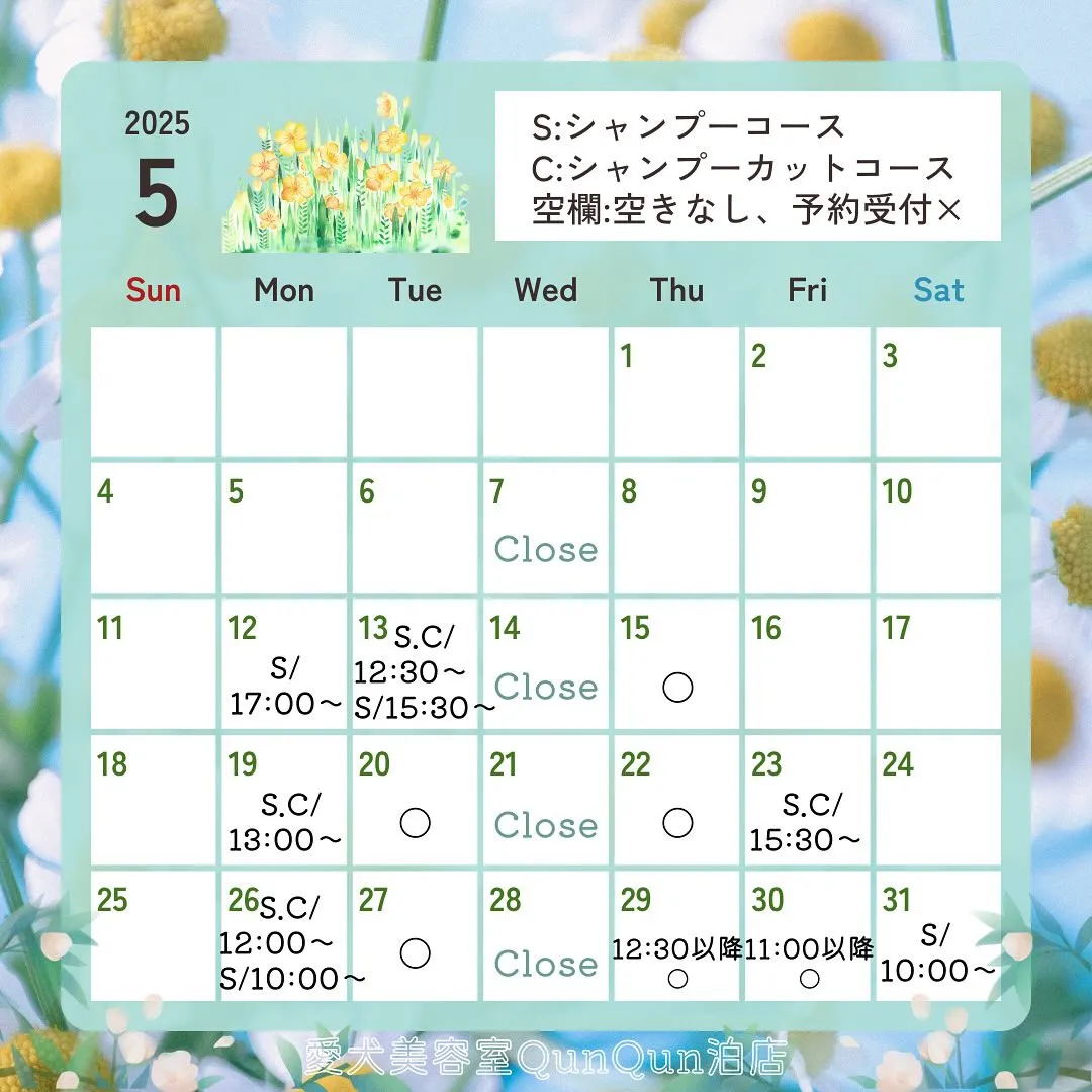 5月空き状況です🤍🐾(5月10日11:30時点)