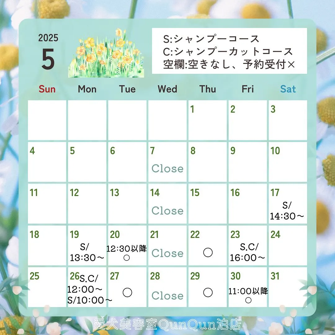 5月空き状況です🤍🐾(5月16日15:00時点)