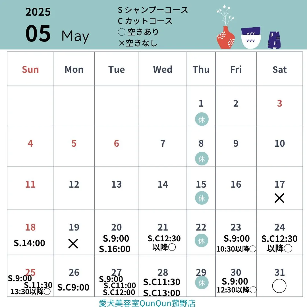 5月の空き状況です💠(5月17日16:00時点)