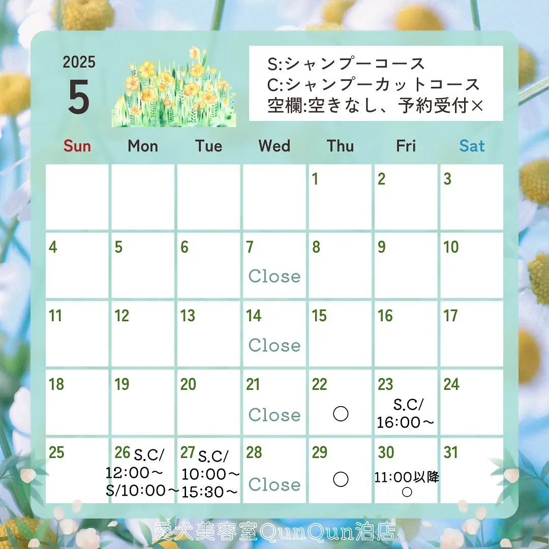 5月空き状況です🤍🐾(5月20日13:00時点)