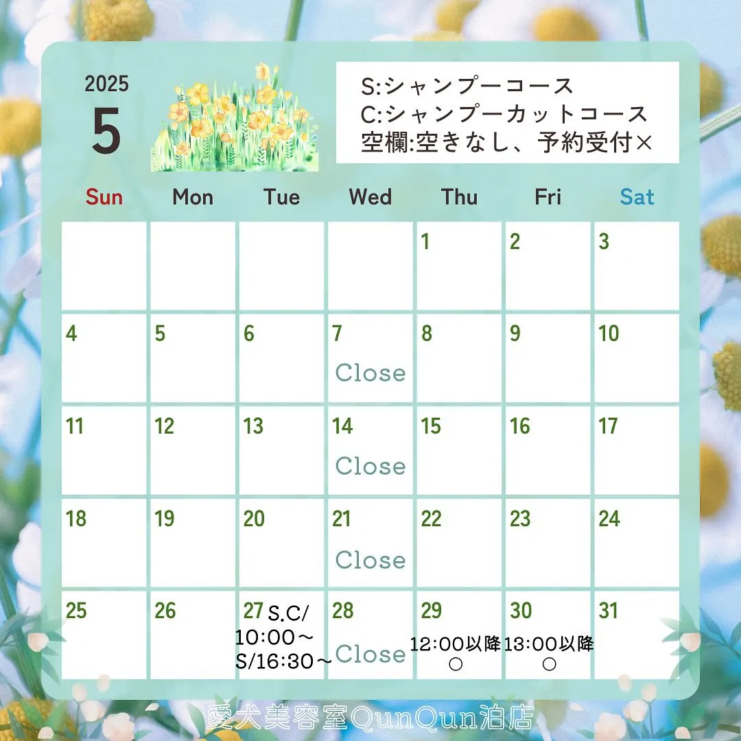 5月空き状況です🤍🐾(5月25日19:00時点)