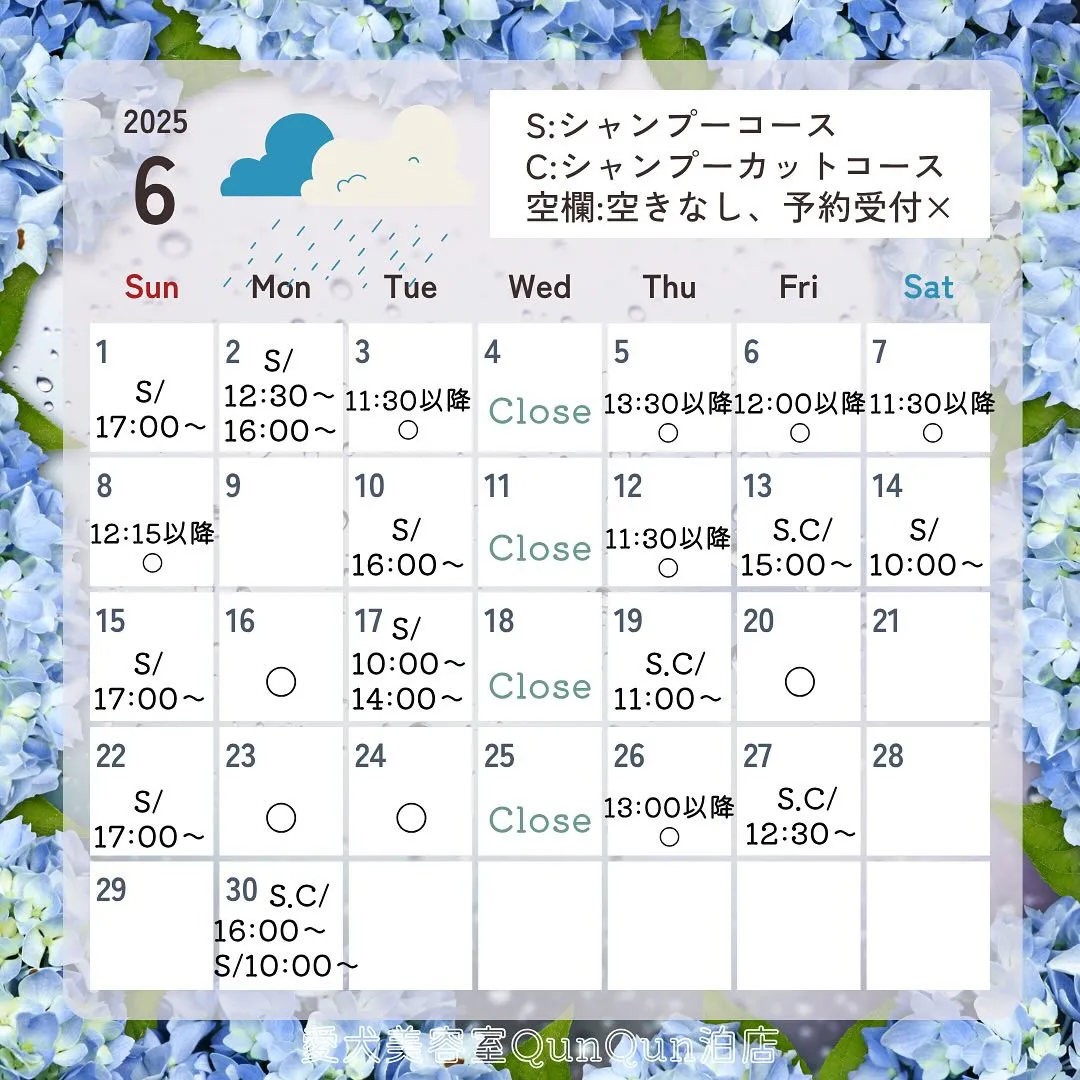 ⚠️空いている日でも犬種によっては時間が足りない場合もあるため、お受けできないこともございます。ご了承ください🙇♀️