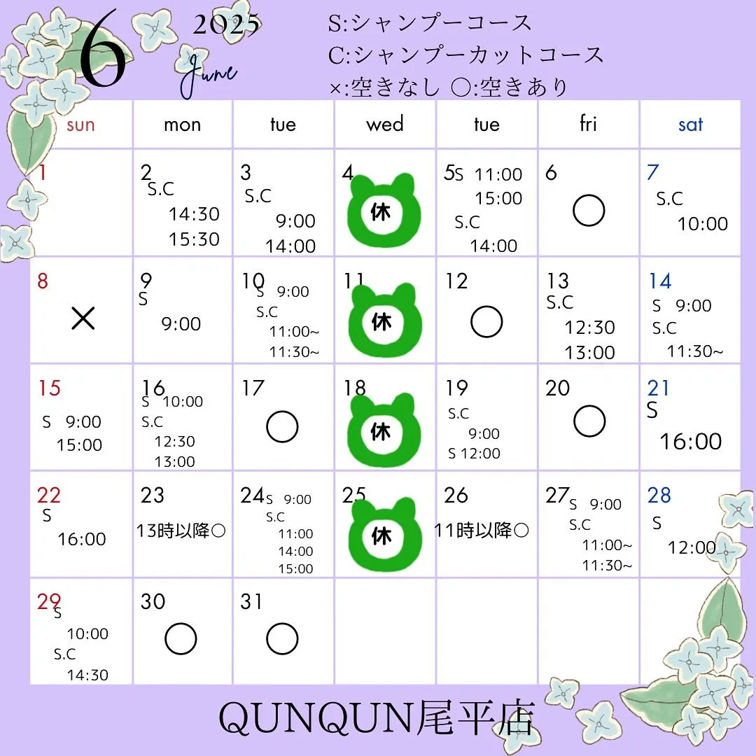 6月空き状況です͛💠✨(6月2日時点)