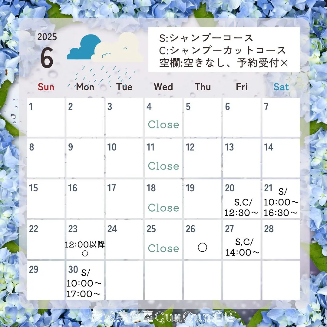 6月空き状況です🤍🐾(6月17日14:00時点)