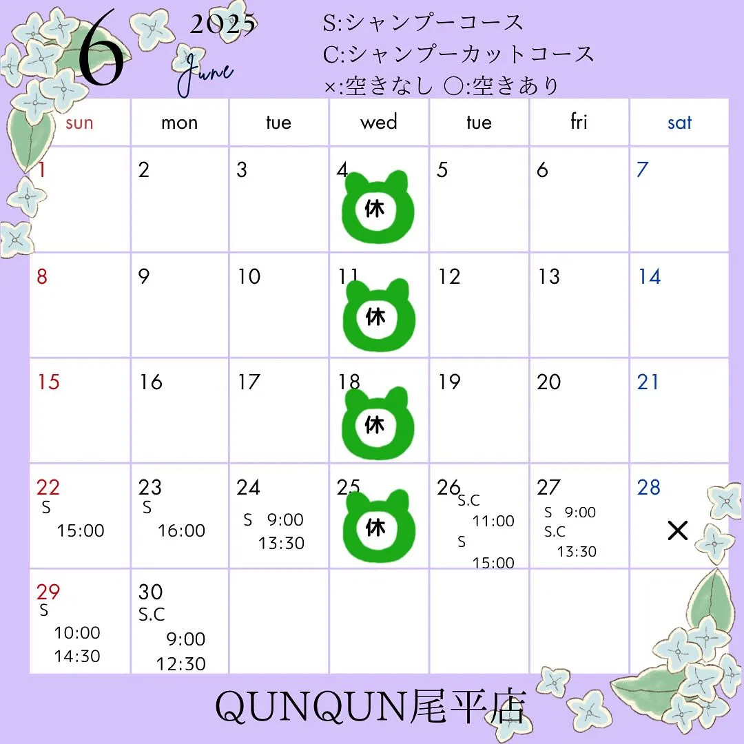 6月空き状況です͛💠✨(6月21日時点)