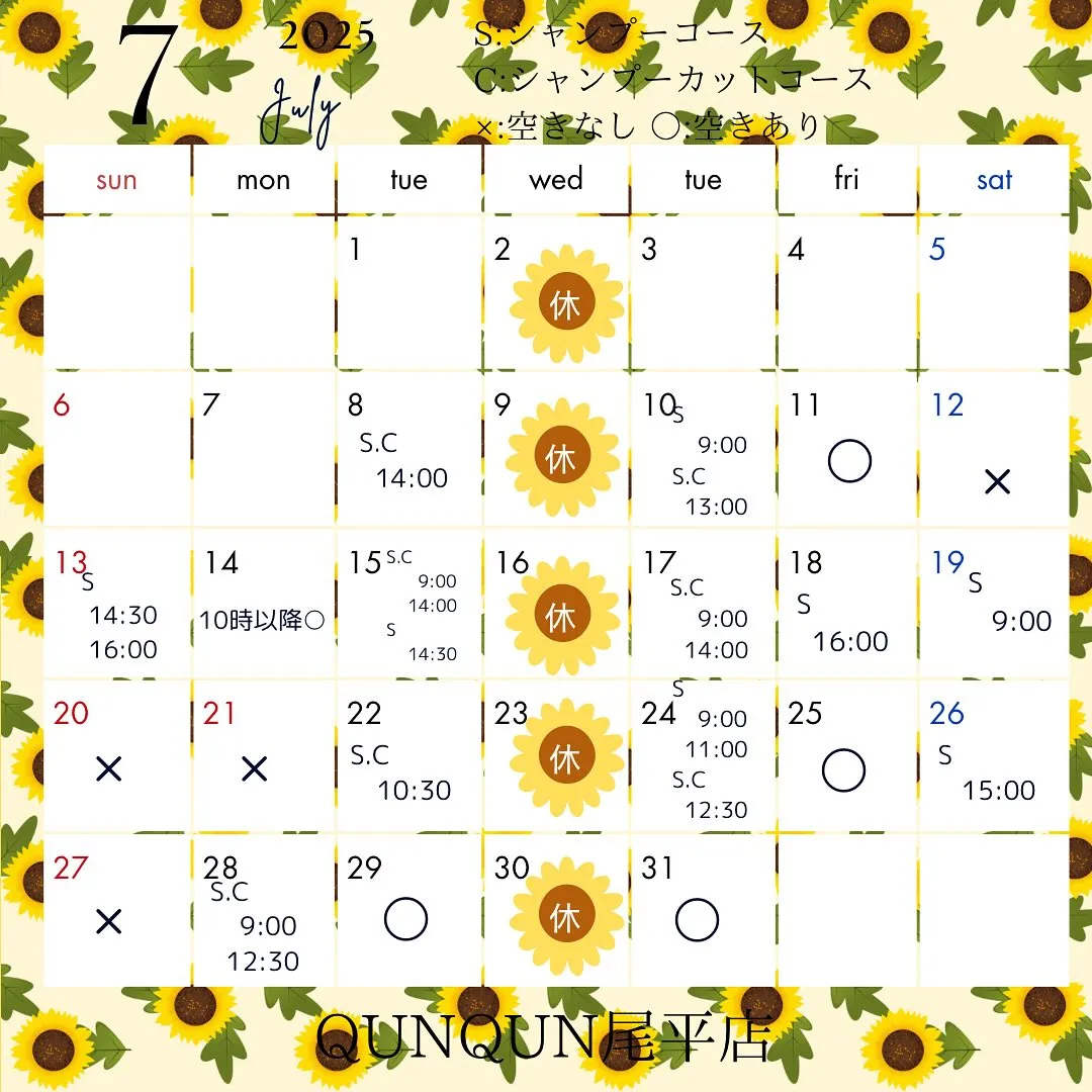7月空き状況です͛🌻✨(6月29日時点)