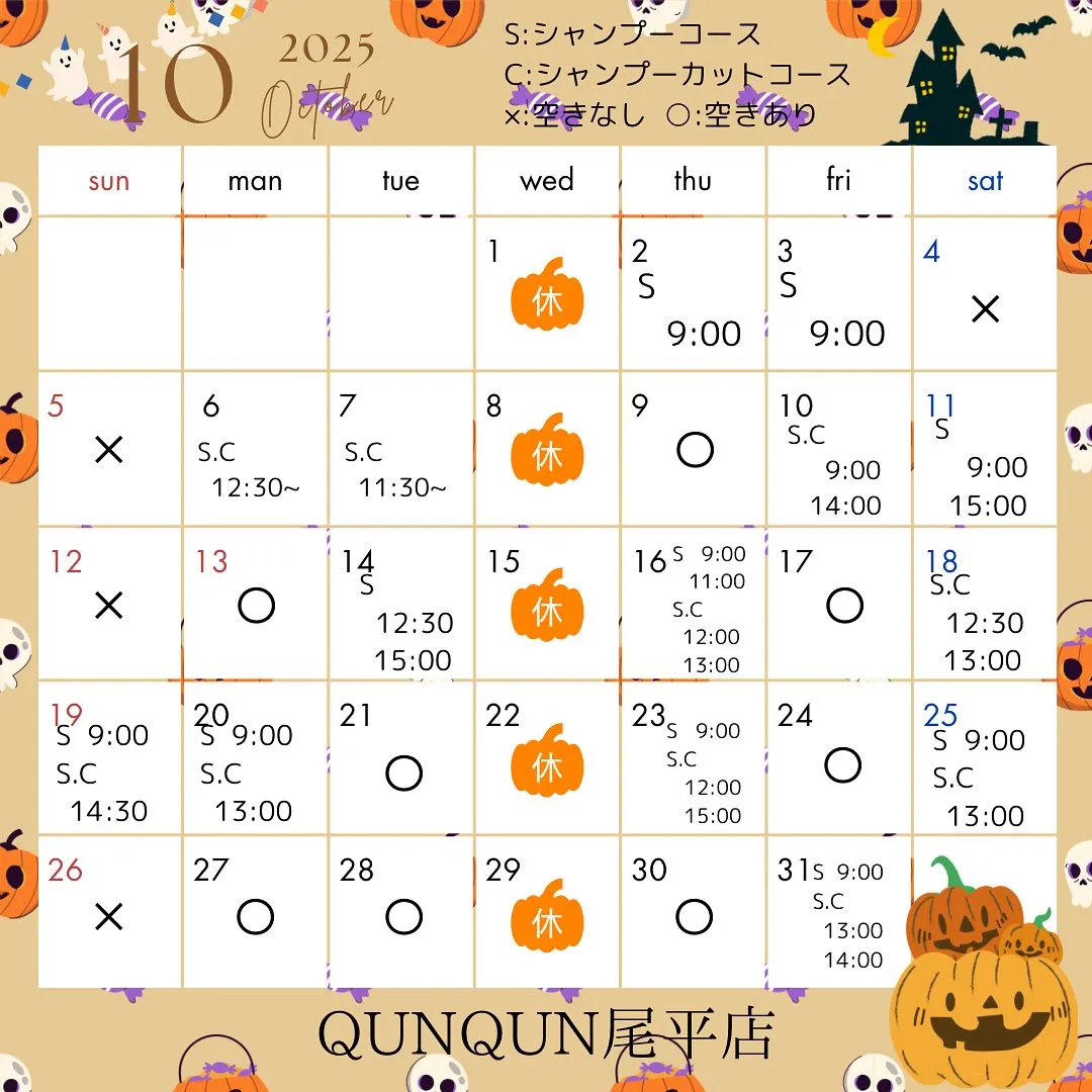 10月空き状況です͛🎃✨(9月26日時点)