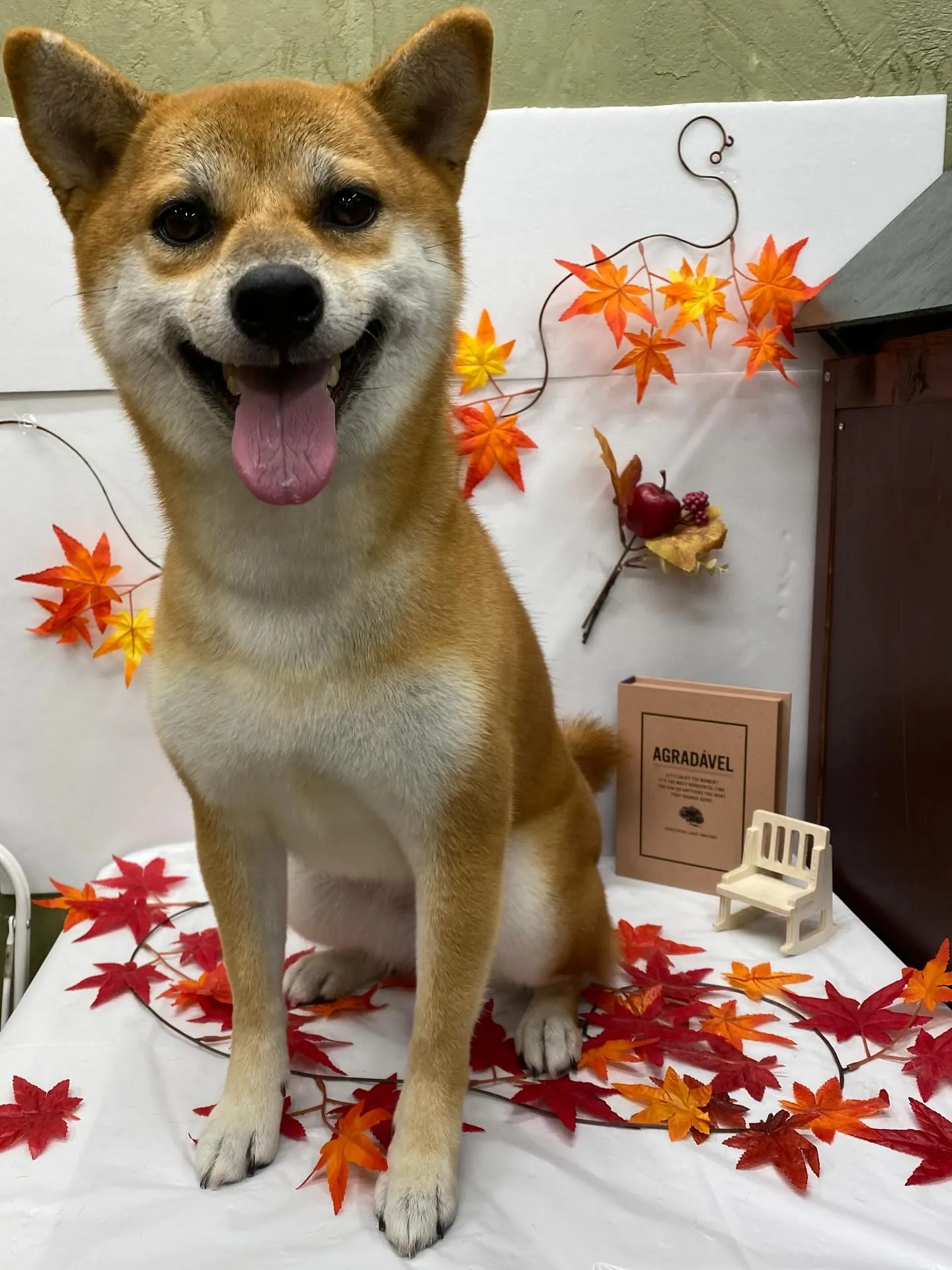 豆柴サイズなのに撮影ブースに乗せたらおっきく見えるね👀