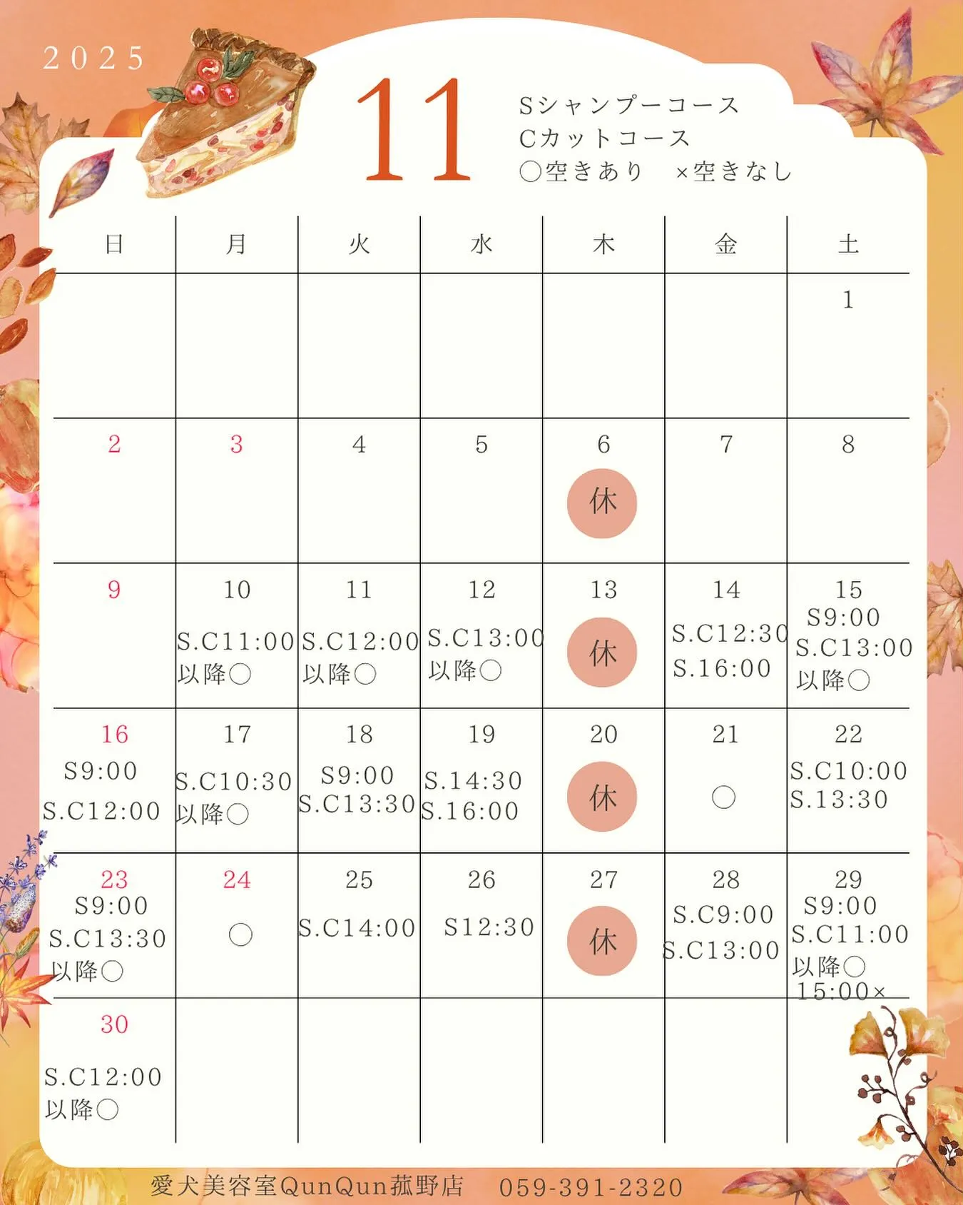11月の空き状況です🍁(11/10 14:15)