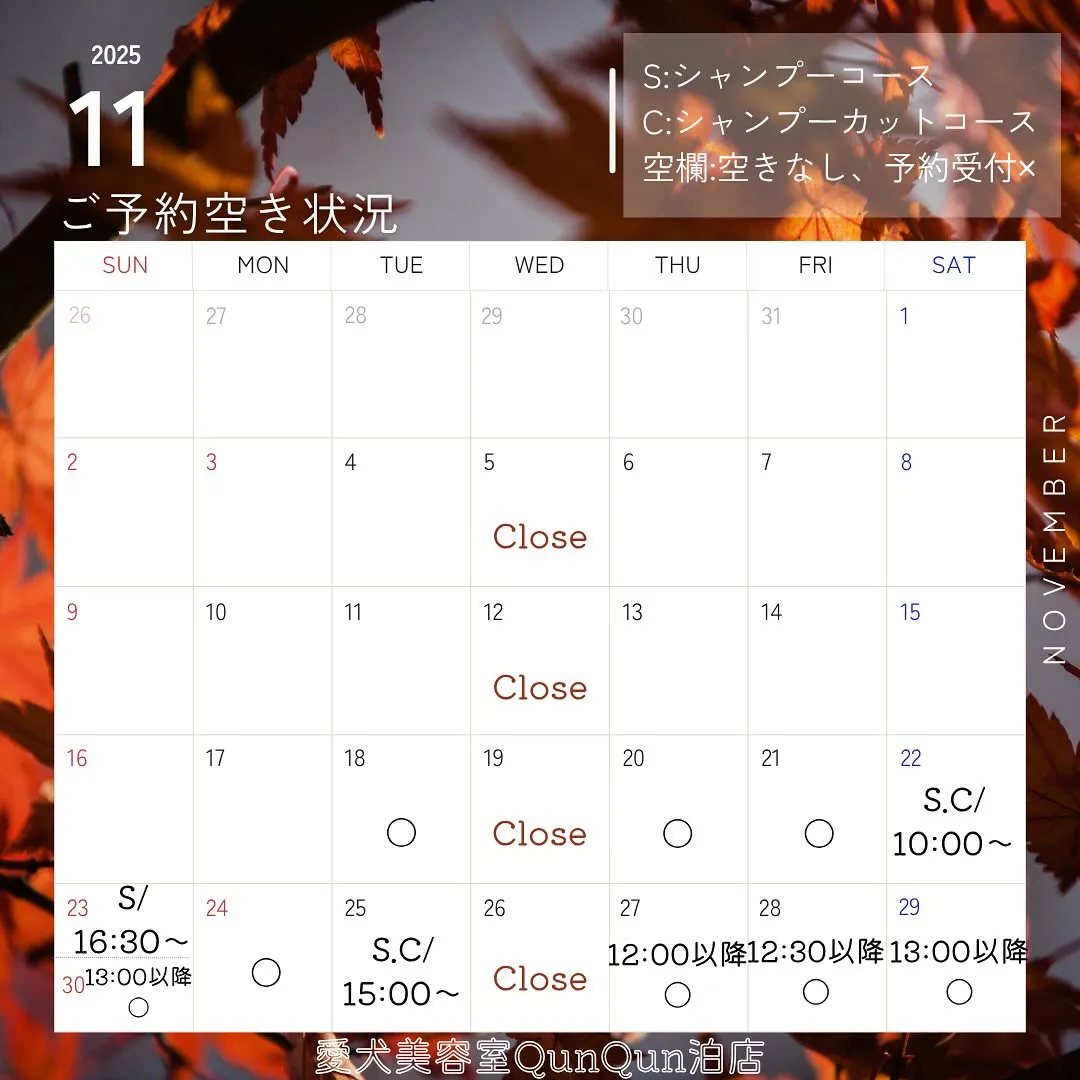11月空き状況です🤍🐾(11月14日10:00時点)