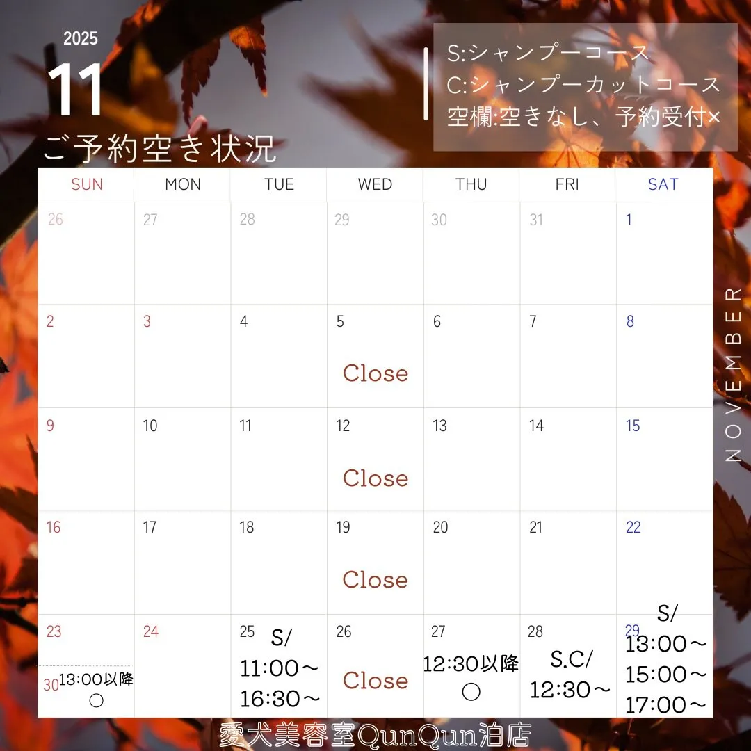 11月空き状況です🤍🐾(11月23日18:40時点)