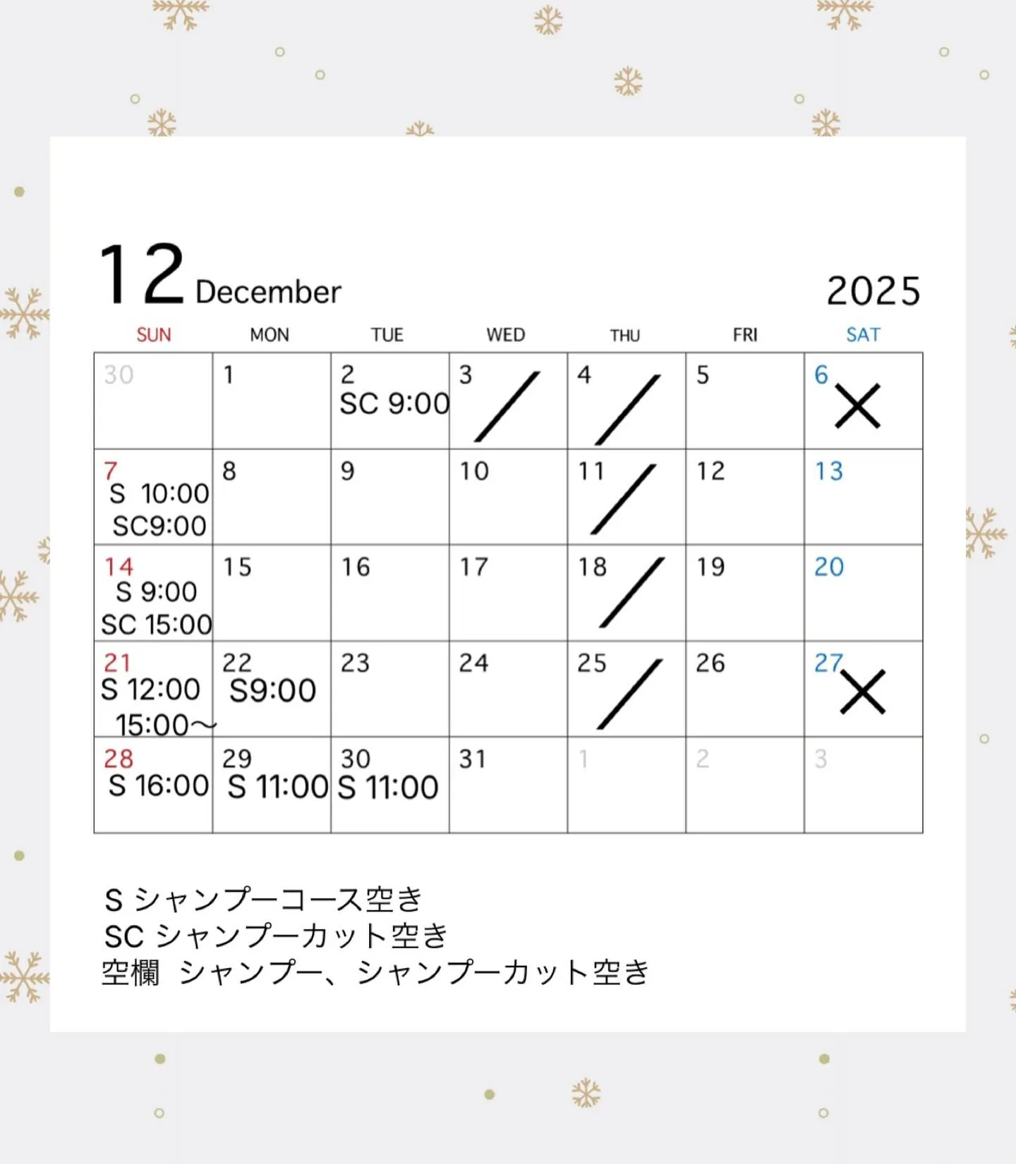 空欄:シャンプー、シャンプーカット共に空き