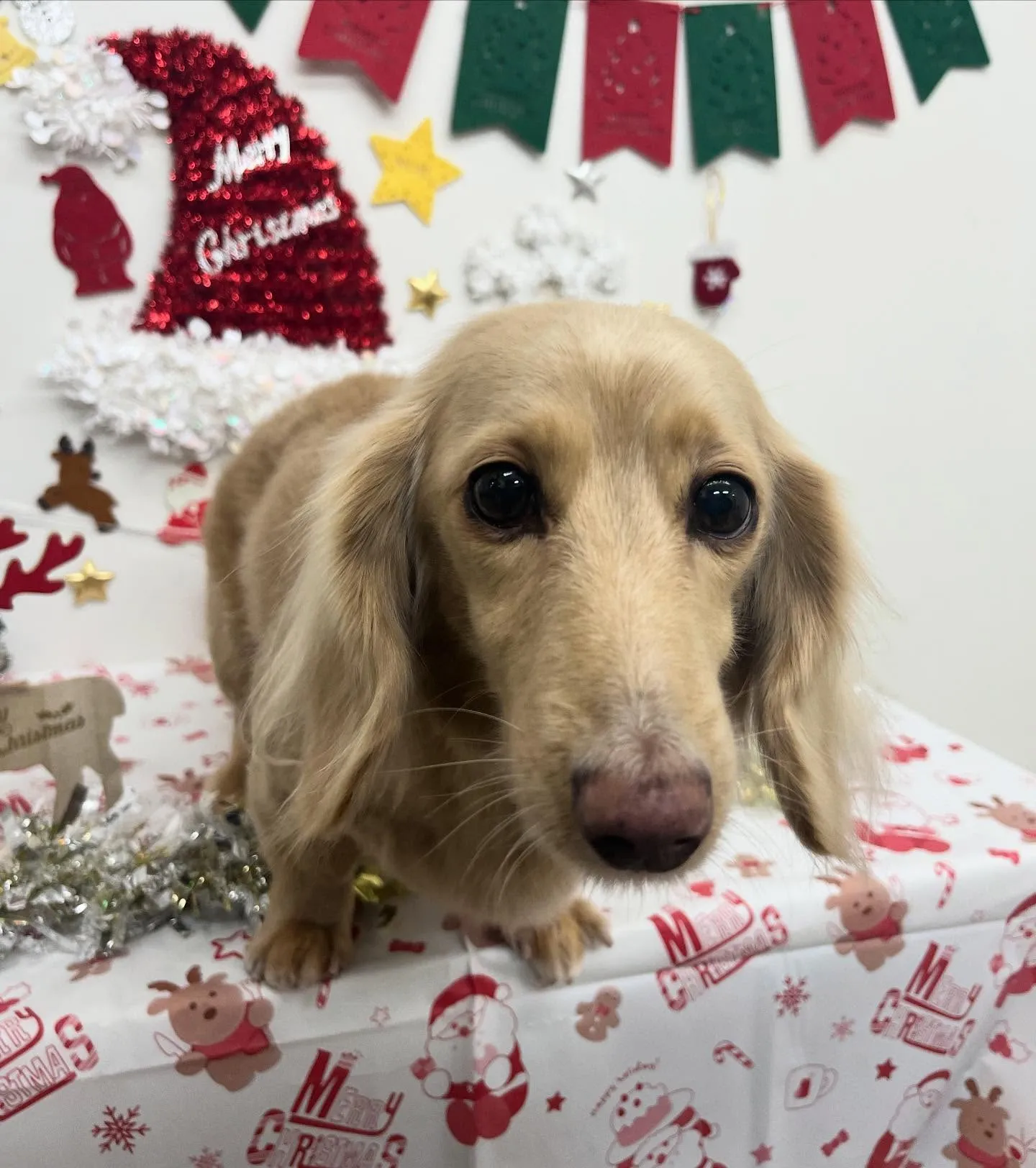 きなこちゃん︎💕︎︎ 2025/12/19 きなこちゃん︎💕︎︎ 今回もシャンプーと部分カットでした✨️いつもとってもお利口さんです✨️ お写真は苦手なのか目を逸らされちゃうけど、なんとかカメラ目線いただきました📸👀 #愛犬美容室クンクン尾平店 #ダックス #いぬすたぐらむ #トリミングサロン