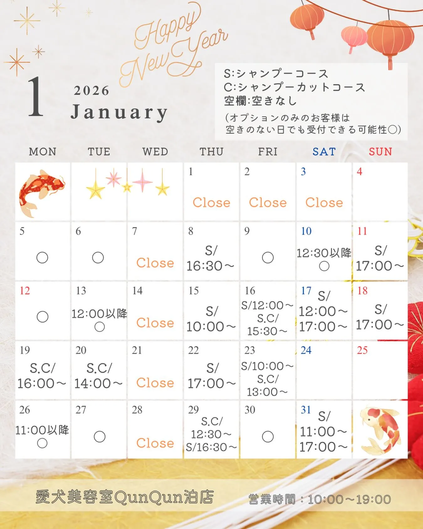 1月空き状況です🤍🐾(12月19日17:00時点)