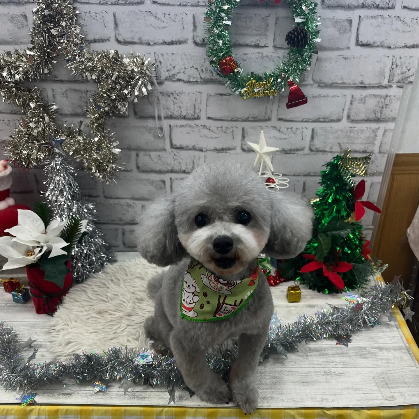 もこちゃん︎💕︎︎ 2025/12/23 もこちゃん︎💕︎︎ シャンプーカットでした✂️ 今日もこてつくんと元気にご来店です♪♪カット中はとってもお利口さん😳いつもスムーズにトリミングさせてくれます🫢💯 #愛犬美容室クンクン亀山エコー店 #トイプードル #トリミングサロン #いぬすたぐらむ