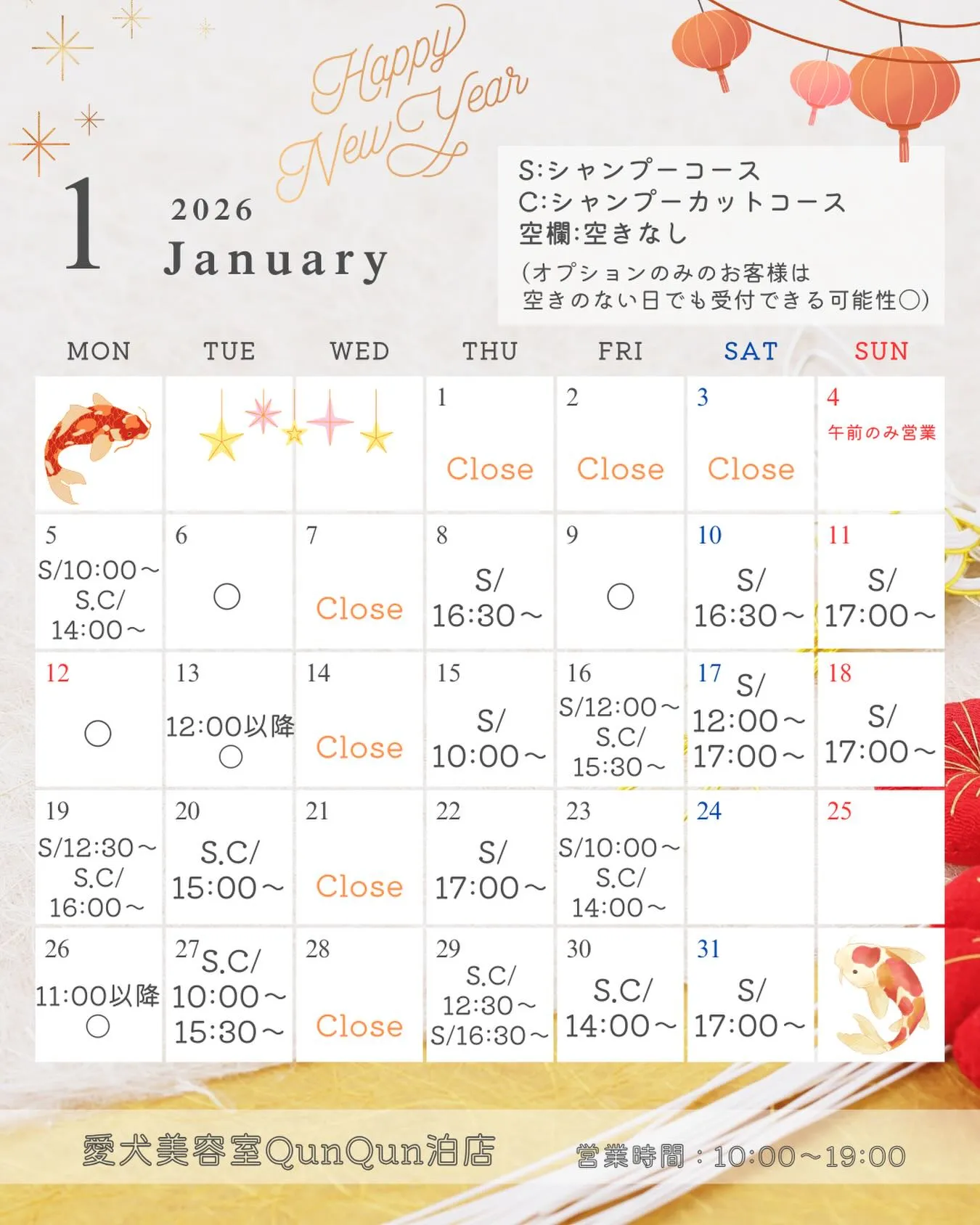 1月空き状況です🤍🐾(12月27日10:30時点)