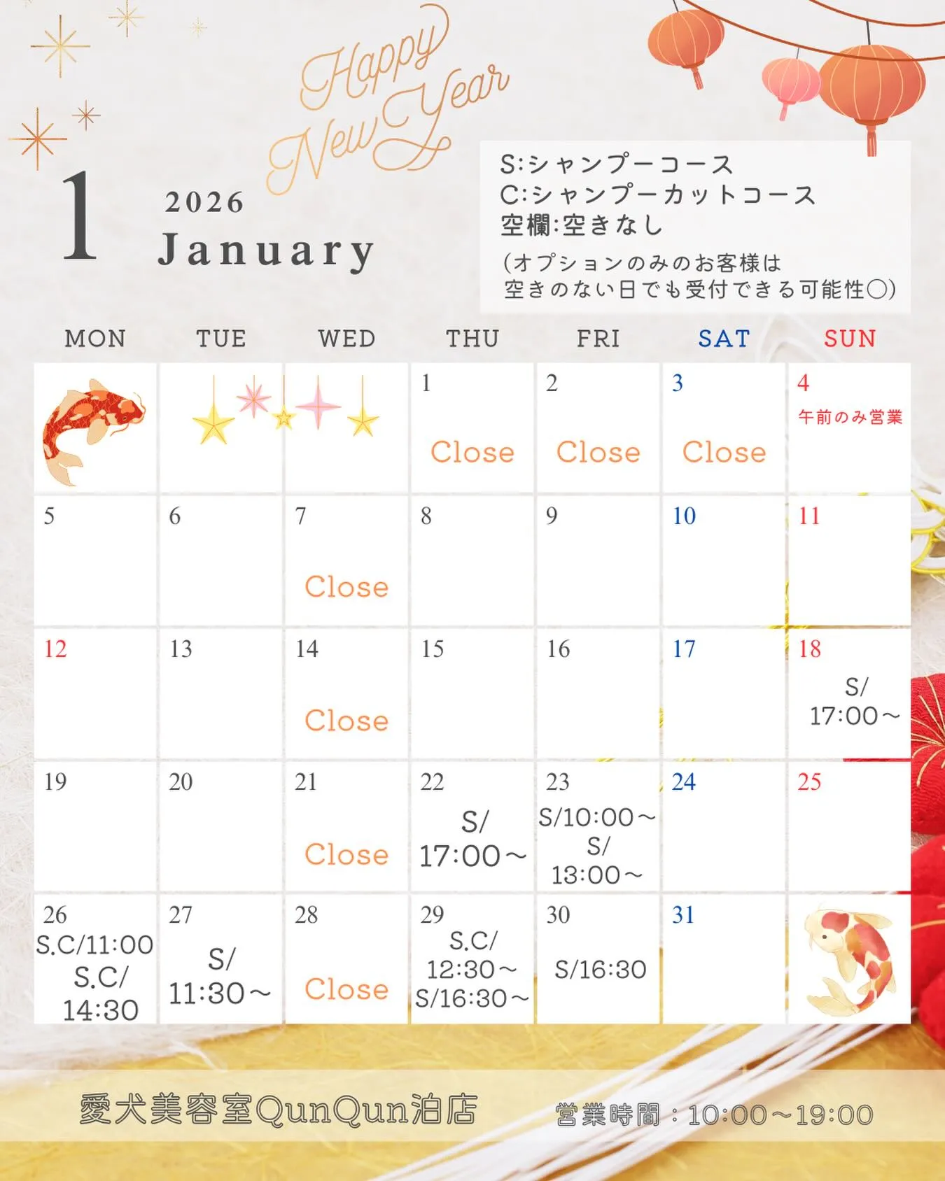 ⚠️カレンダーで空いている日でも犬種や個体差によって時間が足りない場合もあるため、ご予約できないこともございます。ご了承ください🙇♀️