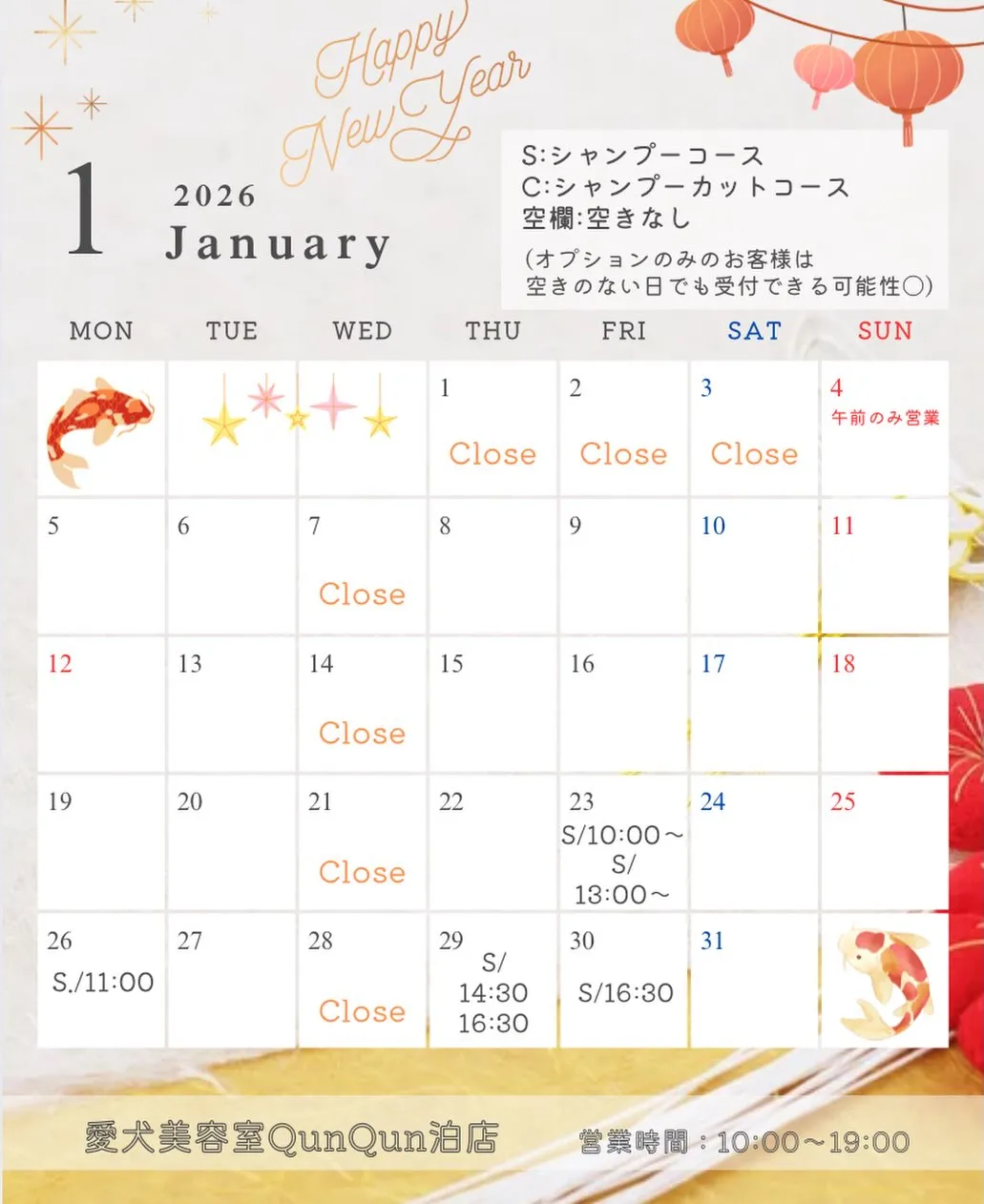 愛犬美容室 QunQun泊店 1月空き状況です🤍🐾(1月19...