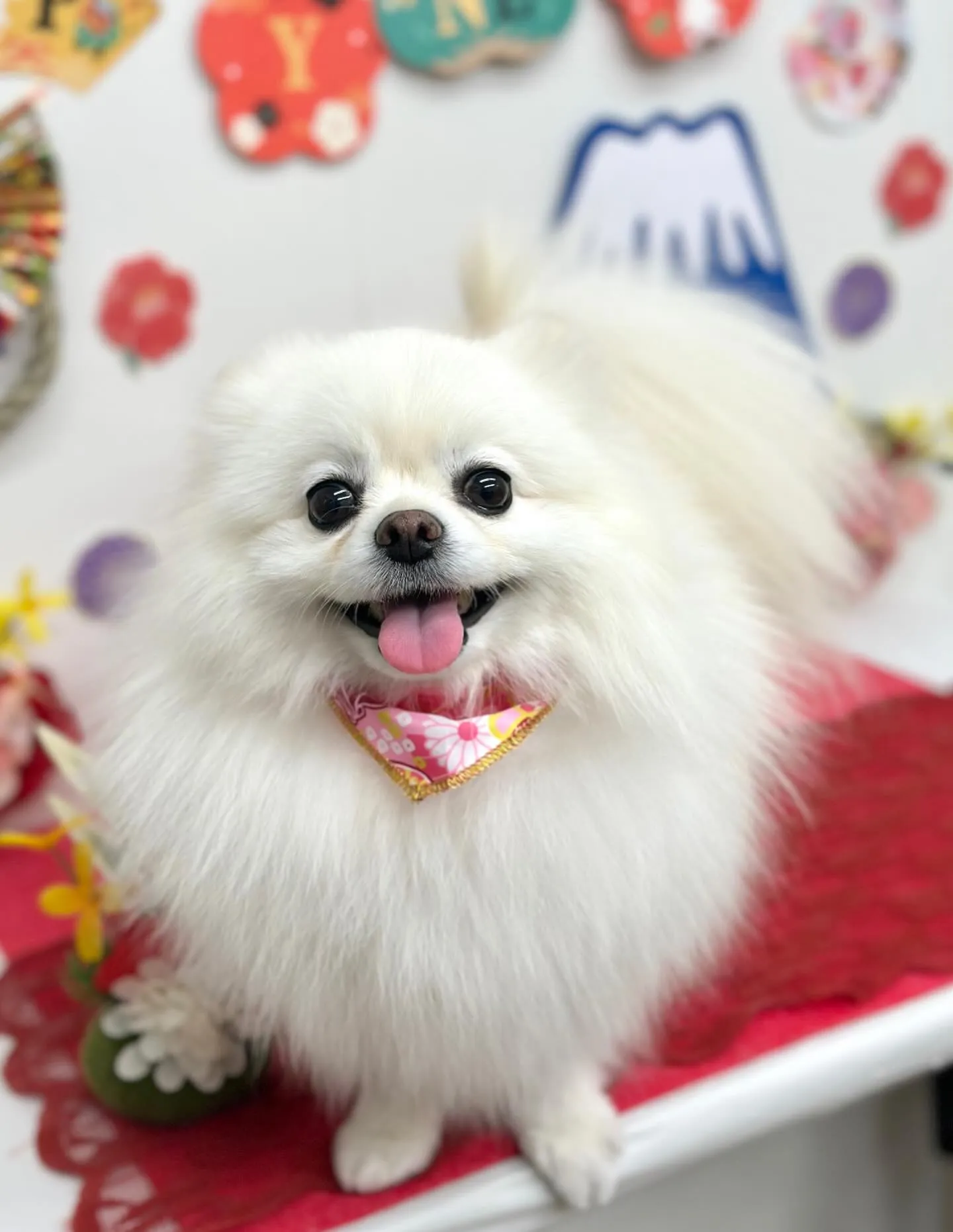 リボンが毛で埋もれてしまうので、今回はバンダナにしました🎶