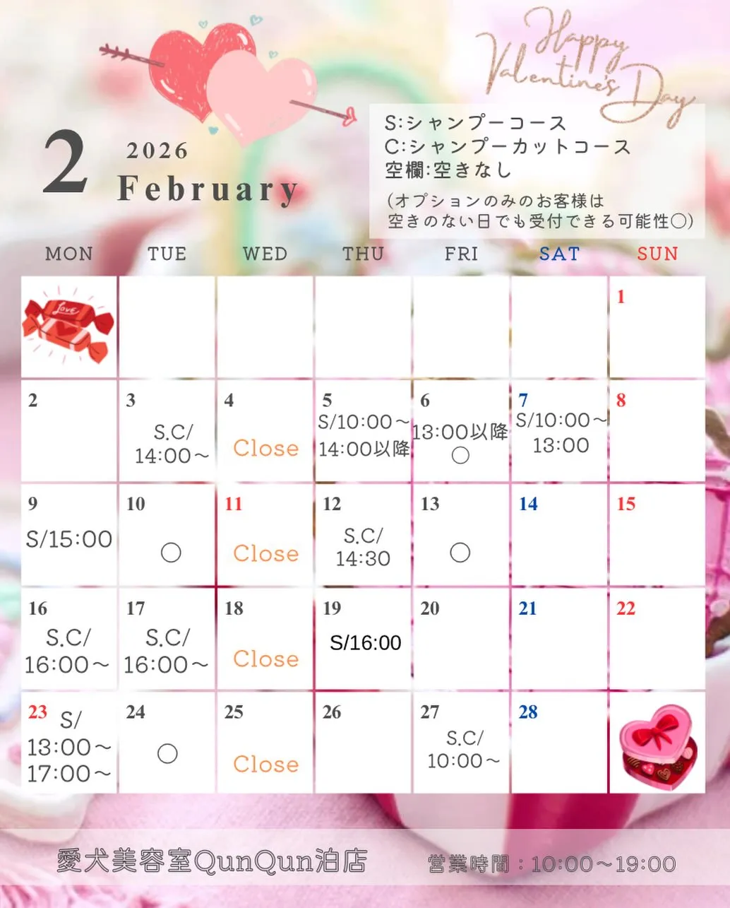 愛犬美容室 QunQun泊店 2月空き状況です