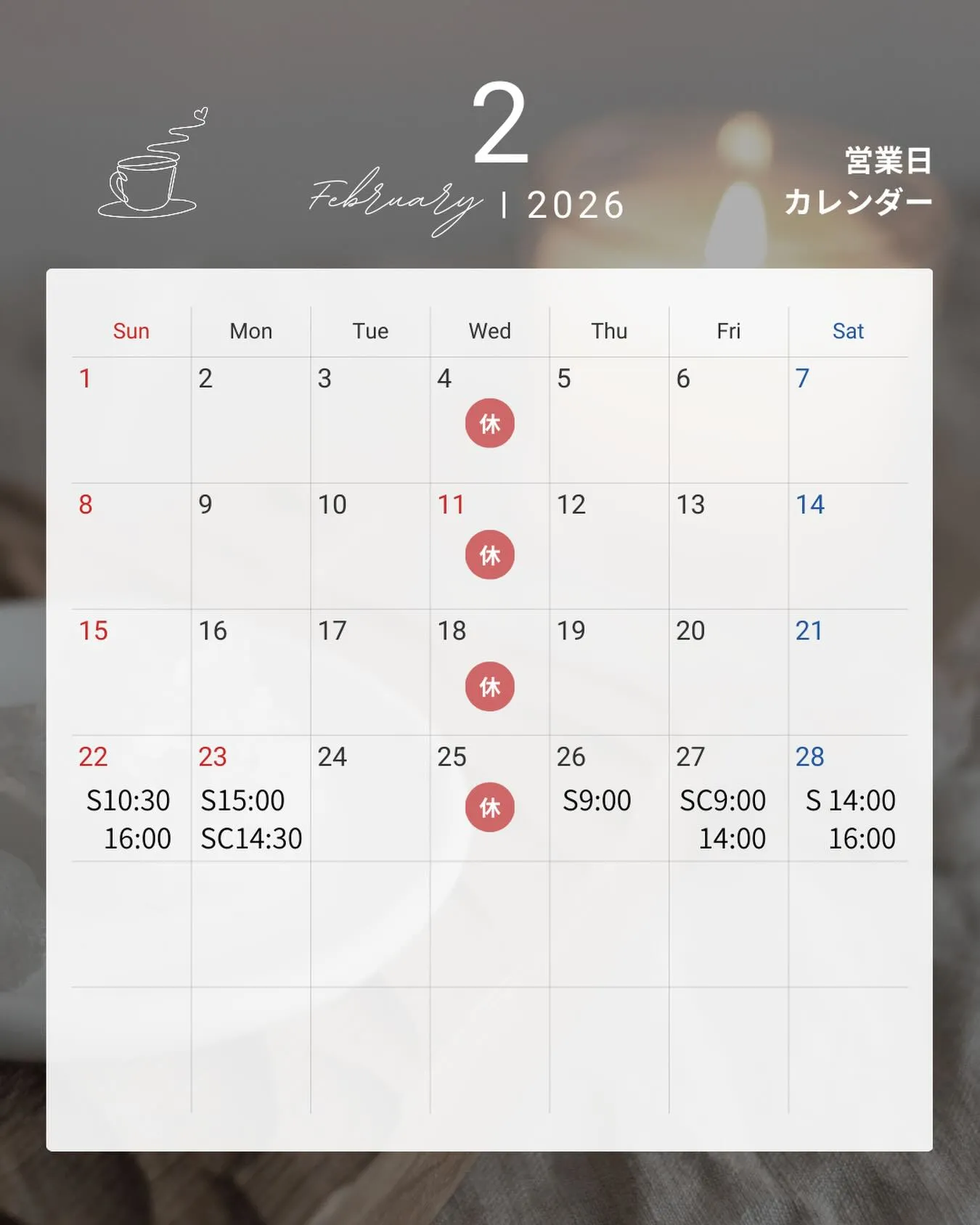 オプションのみのお客様は空きがない日でもご予約いただける場合がございます