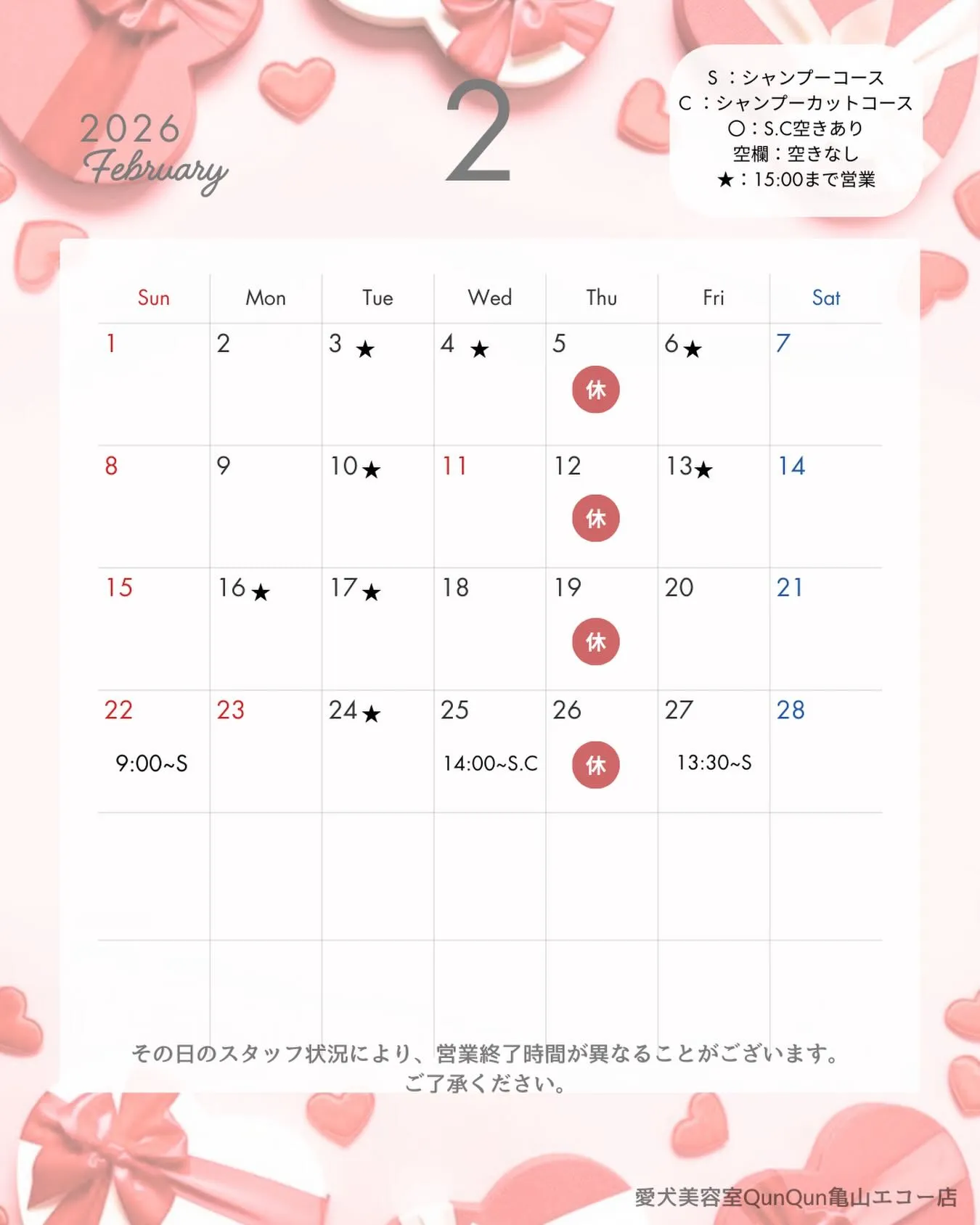 2月の空き状況です💝(2/21 18:00時点)
