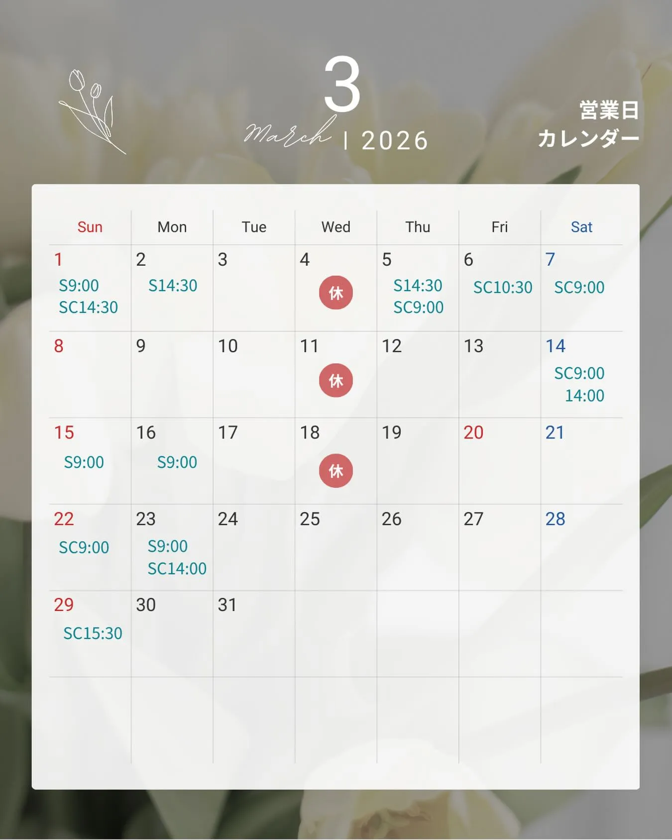 ※3月から8月の間、最終週の水曜日も営業させていただきます😊ご予約お待ちしております🐾