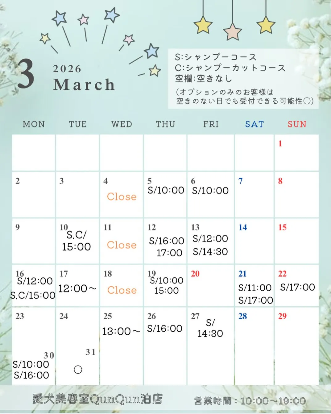 ⚠️カレンダーで空いている日でも犬種や個体差によってお時間の都合上、ご予約いただけない場合がございます。ご了承ください🙇♀️