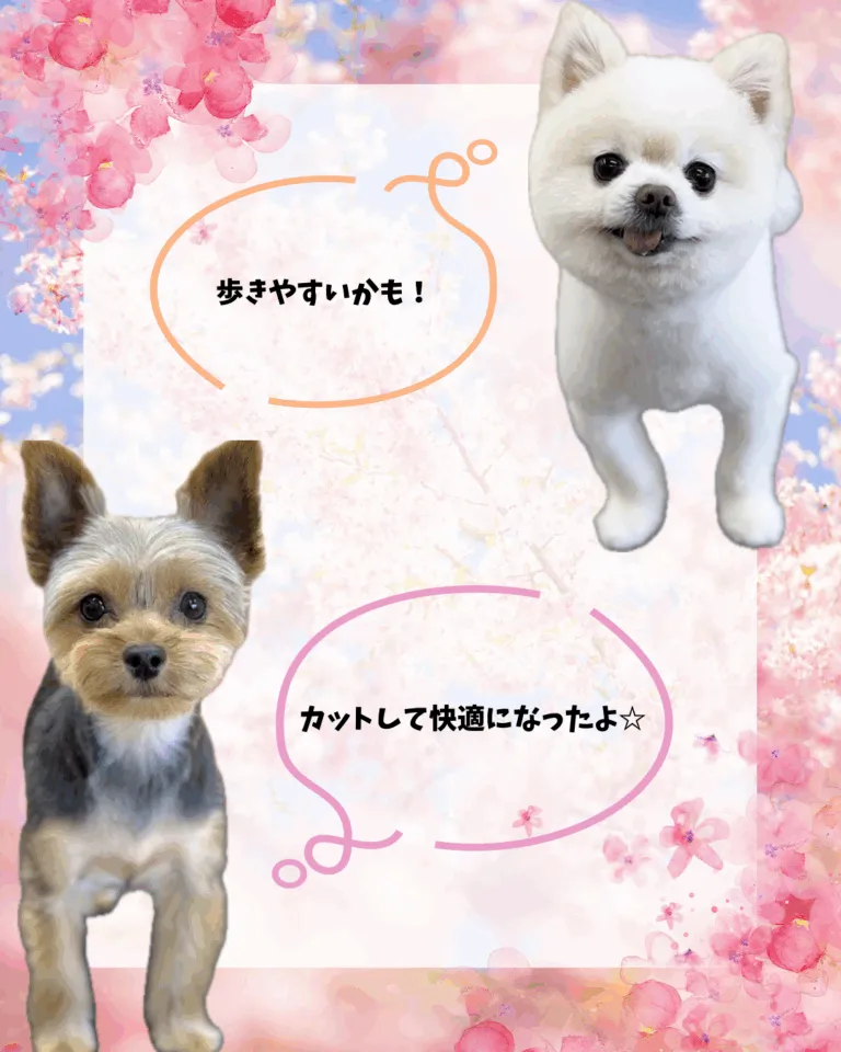 気温が高くなる季節には熱中症の危険があります🥵毛の長いわんちゃんは体温が上がりやすいです。トリミングして通気性を良くしましょう。 ただし、皮膚への紫外線の影響もあります。短くしすぎないようにしたり、紫外線の強い時間帯や日当たりの良い場所を避けて散歩するなどしましょう☀️ 毛の長い子や長時間外で生活しているわんちゃんはノミ、マダニに寄生されるリスクが高いです。定期的なトリミングで毛を短く保つことで予防、早期発見、駆除がしやすくなります。 トリミングではトリマーがわんちゃんの全身を触るので、普段気づきにくい場所にできているしこりや皮膚の異常、虫などに気づくことも多いです。 病気の早期発見にも繋がるところも、トリミングのメリットです☝🏻